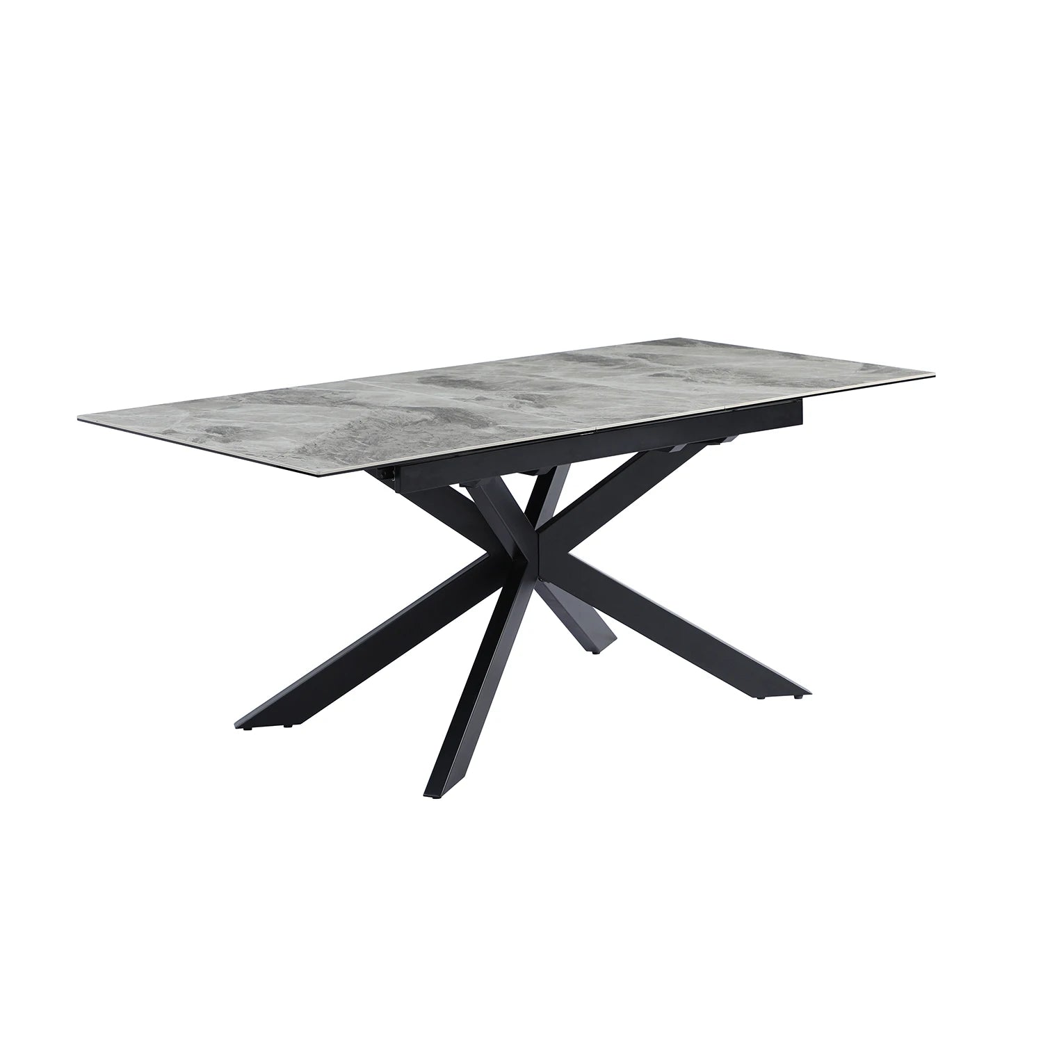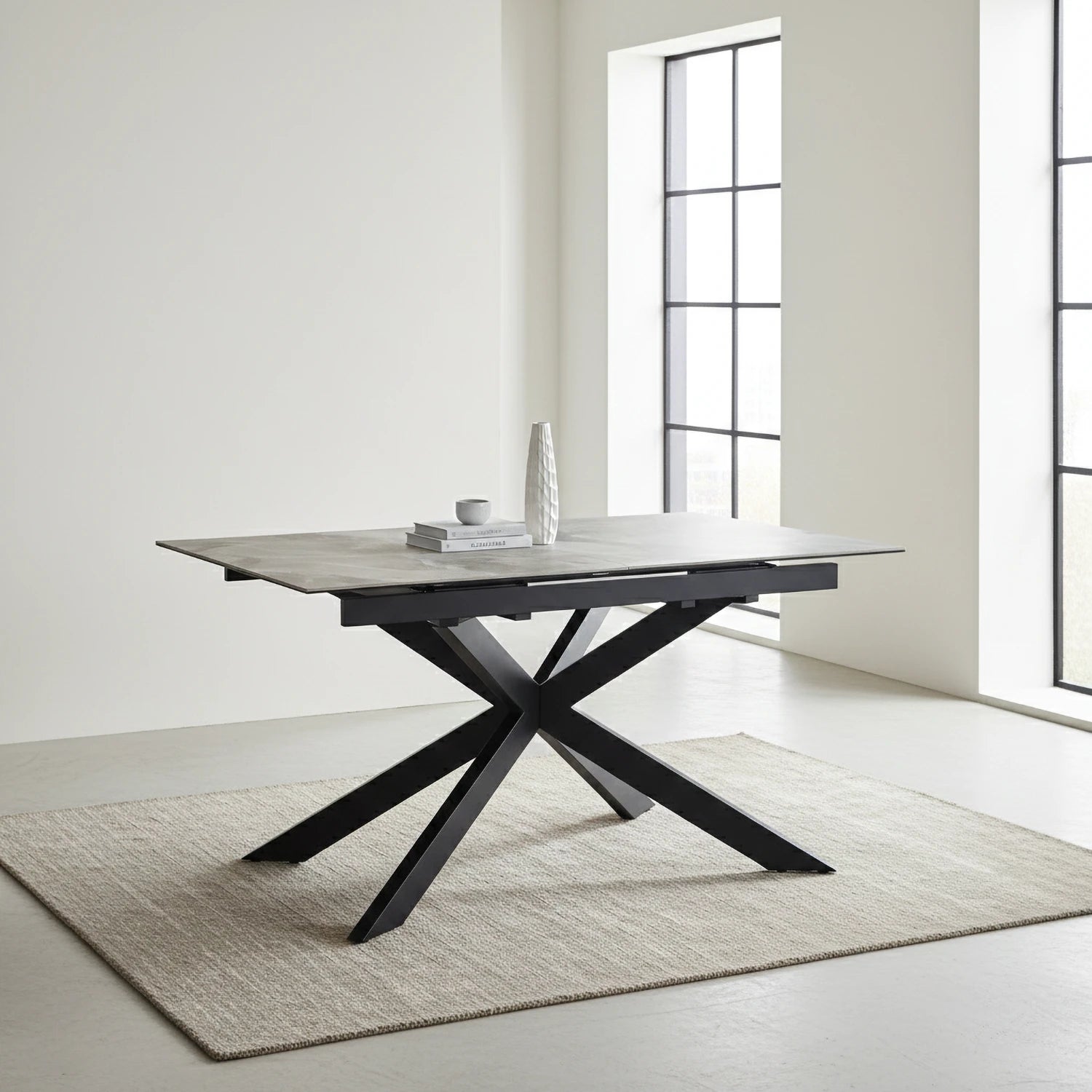Introducing the Athena Light Grey Extendable Ceramic Dining Table, a bold and modern centrepiece designed to elevate contemporary interiors with its sleek industrial-inspired styling. The Athena table reimagines the industrial trend with clean lines, compact proportions, and a striking starburst iron base that creates an unforgettable silhouette. Its light grey marble-look ceramic top adds a luxurious visual finish while delivering the everyday practicality modern homes demand.