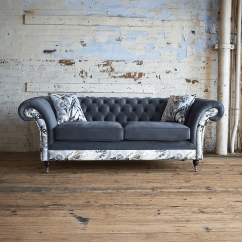 Discover timeless British elegance with the Oswald & Pablo Grey Velvet Chesterfield Sofa. This handcrafted piece redefines classic style with a modern edge, blending iconic Chesterfield detailing with vibrant botanical print panels—ideal for those who want comfort and character in one unforgettable design.