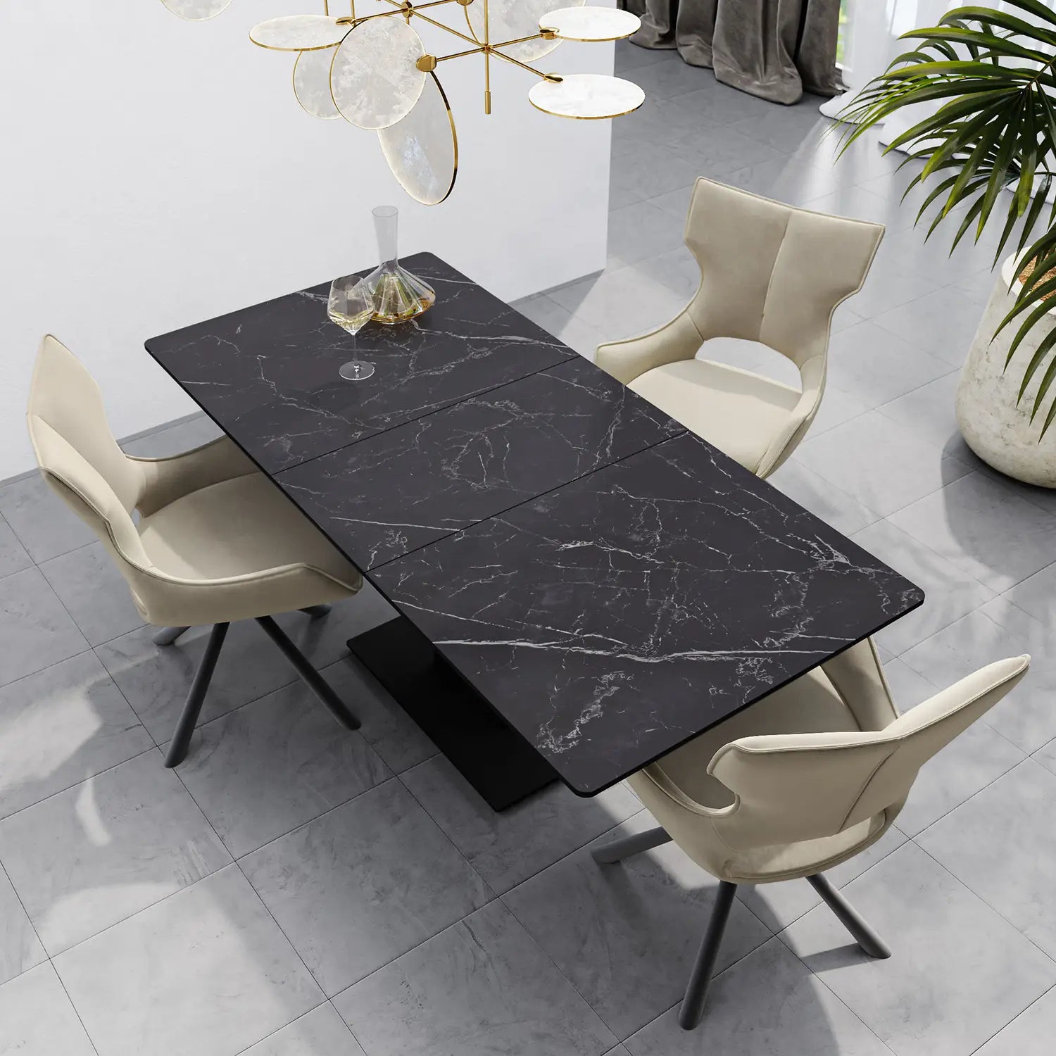 Featuring an auto-rise extension mechanism, the Pavoni table effortlessly extends from 140cm to 180cm, accommodating varying dining needs with ease. The 2mm Sintered Stone Ceramic top adds a touch of luxury and sophistication, while the sleek and modern design complements a range of interior styles.